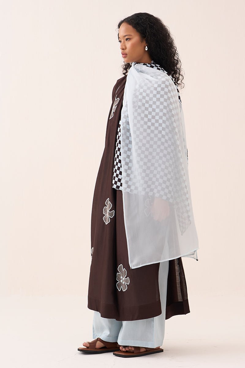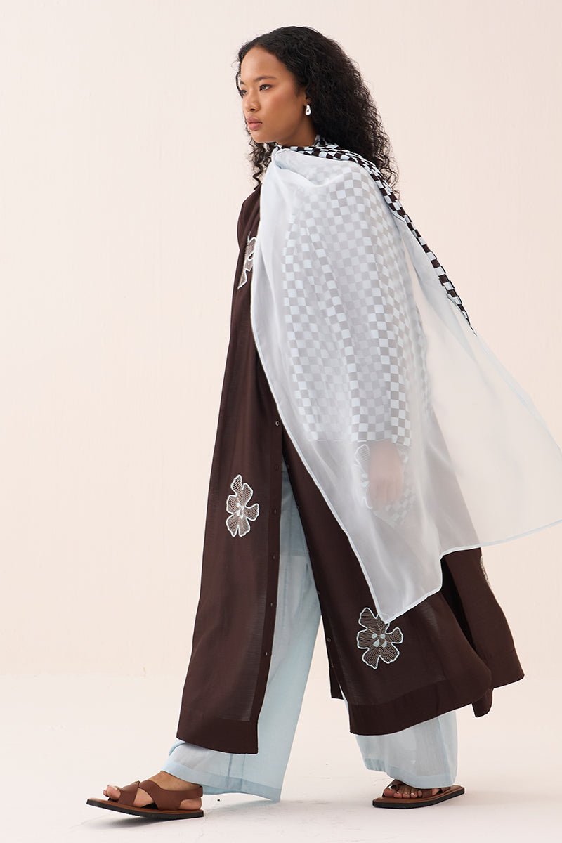 Floral Emb. Gather Neck Shirt Co-Ord (Set Of 3)
