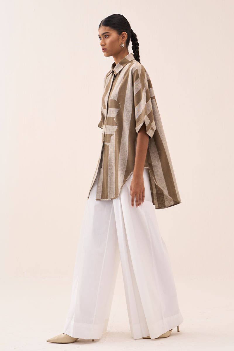 Floral Stripe Applique U-Hem Shirt Co-Ord (Set Of 2)